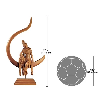 The goddess compassionately looks down to Earth from atop her crescent moon throne in this exquisite sculpt by an unknown artist. Guan Yin is sculpted with prayer beads around her neck and robes flowing delicately from her shoulders. The dramatic, more than two-foot-tall imported work of gallery art is cast in quality designer resin and finished in faux terra cotta. Simple assembly required. 15½”Wx5½”Dx28″H.9 lbs.