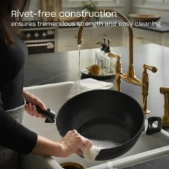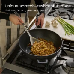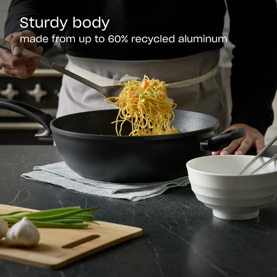 - Highly Scratch-Resistant Wok: Extremely durable wok with an aluminum body and a black water-based coating; safe for metal kitchen utensils