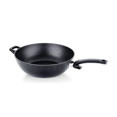 This Fissler wok is suitable for any stovetop, including induction. The exclusive CookStar base provides optimal heat absorption, distribution, and retention for even cooking and helps you save energy on any type of stovetop. Made from recycled aluminum, the wok is durable and has a highly scratch-resistant, nonstick coating that makes it safe to use with metal kitchen utensils. The unique coating of silicon carbide particles creates a rugged, hard-as-stone surface with a texture reminiscent of cast iron cookware. The ergonomic safety handles with finger shields offer anti-slip, smooth handling, and heat protection. You can saute and stir-fry with ease and dish meals without the worry of ingredients sticking. Every cook and kitchen should have one!