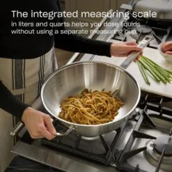 The chef-inspired laser-etched measurement markers allow you to dose liquids without measuring cups, while the broad pouring rim makes it easy to pour liquids without drips and spills. With German quality and craftsmanship, this stainless steel stock pot is also dishwasher-safe, durable, and rivet-free so you can pass it on to the next generations.