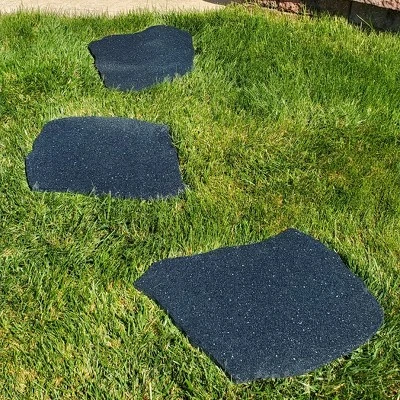 Flexon’s slate stepping stones comes in 3 pieces in a box and they are made with 100% recycled rubber. Each stepping features a slate stone design with a texture on the top like natural slate stones. In addition, each rubber stone is sturdy but soft to the touch, durable to withstand all weather condition. Perfectly suited to decorate your outdoor patio, walkway, or backyard garden.