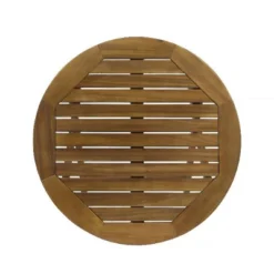 - Round Table with Slatted Top: The circular table with a slatted top enhances the natural look of the set. Its design allows for easy arrangement of seating, accommodating your guests comfortably. The round shape promotes conversation and a sense of togetherness, making it ideal for family meals, outdoor parties, or simply relaxing with a cup of coffee.