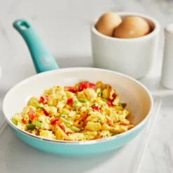 You’ll flip for this frypan—whether making pancakes, sautéing veggies, searing steak, or even baking a skillet dessert. Plus, the fun turquoise color might just make kitchen time feel like a day at the beach.