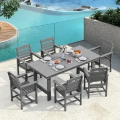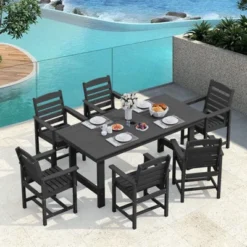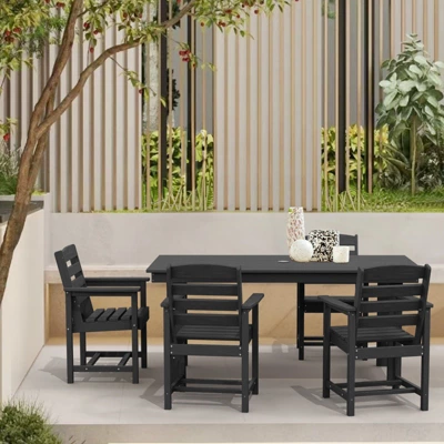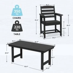 - Weatherproof and Fade-free: designed to brave the elements, our HDPE dining set is UV-resistant and fade-proof, retaining its vibrant color and beauty season after season rain or shine, your outdoor oasis remains inviting and picture-perfect.