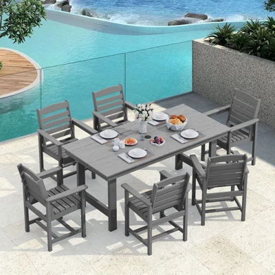 - Ultimate Durability: Crafted from premium high-density polyethylene (HDPE), our outdoor dining set offers unparalleled durability. Resistant to cracking, fading, harsh sunlight, UV rays and any other weather conditions, it ensures your furniture stays protected for seasons.