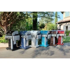 | Features | Wheels, Rust-Resistant, Folding Shelves, Grease Trap, Cool Touch Handle, Adjustable Heat, Push Button Ignitor, Exterior Temperature Gauges, electric ignition, Battery Operated |