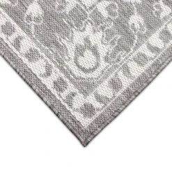 With a nod to 60’s mod style, this is the perfect area rug to add abstract and contemporary design to your space. Swirling faded hues of dark and light grey over an ivory background are detailed without overwhelming; making this pattern ideal for any room inside or outside your home. Made in Turkey from 88% Polypropylene/12% Polyester, the Malibu Collection is Power Loomed to create intricate designs offered in a high-quality finish and a substantial, sturdy feel. Each design has sophisticated pattern definition accented with heavy texture and subtle background shading. The material is flatwoven, low profile, weather resistant, UV stabilized for enhanced fade resistance, durable and ideal for those high traffic areas such as your patio, sunroom, kitchen, entryway, hallway, living room and bedroom; making this the ideal indoor or outdoor rug. Detailed patterns are offered in an eclectic mix of styles ranging from abstract, tropical, casual and traditional designs. Limiting exposure to rain, moisture and direct sun will prolong rug life.