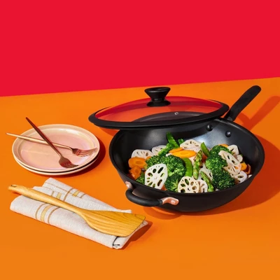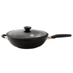 - COVER IT UP: We’ve got you and your food covered. Our stirfrying wok pan comes with a handy glass lid so you can keep an eye on your food while the silicone-lined rim locks in all those juicy flavors from your ingredients.