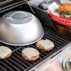 A larger version of our popular Cheese Melting Dome. 10″ diameter dome captures smoke, heat and moisture to provide the perfect finish to grilled foods! Doubles as a multi-purpose cover for stovetop use as well.