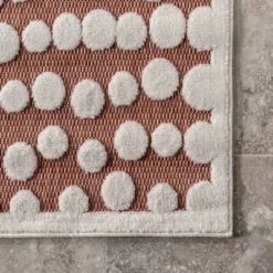 Whoever said beautiful floor accents are only for inside the home hasn’t yet met this geometric indoor/outdoor rug. Designed to stand up to the elements while adding a modern charm with its dotted design. This piece is so versatile that you might find yourself not only using it on your patio, but in your living or dining room as well! It’s time to create your own oasis with our easy to care for and pet-friendly area rugs.