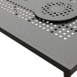 84″ Modern Mesh Aluminum Rectangle Patio Dining Table With Two Lazy Susans – Black – Oakland Living