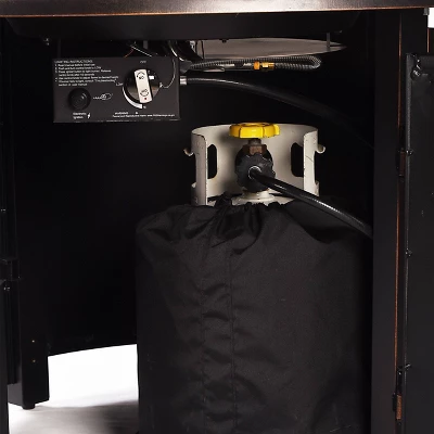 • Comes with a swinging door that easily stores your standard propane tank