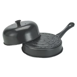 Cook up all your favorite one pan meals with the Oster Bressler 13.5in carbon steel wok. This large wok is perfect for stir fries, fried rice, one pan meals and more. This versatile pan features sloping sides that offer maximum heat contact for even cooking, a flat bottom that promotes stability, nonstick coating for easy release, and a riveted wooden handle for a strong and safe grip. Constructed with sturdy textured carbon steel for long lasting durability, this wok is also compatible with gas, halogen, electric, and vitroceramic stovetops.