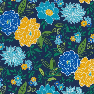This large outdoor tufted loveseat cushion features a large-scale floral printed in bright shades of blue, yellow and green. It will make a striking statement in any outdoor space. Additional features of this outdoor tufted loveseat cushion include recycled polyester fiber fill and a sewn seam closure. Also suitable for indoor use.