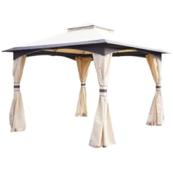 - Outdoor Patio Gazebo: Our patio gazebo features a sleek double canopy and two-tone look. It’s elegant enough to function as an outdoor centerpiece yet spacious enough to fit a crowd without feeling cramped. Whether you place it in the backyard or out and about, we have you covered.