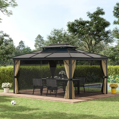 Looking for a spacious option for your party or picnic plan? Outsunny has a 15′ x 11′ gazebo that’s got you covered. Set up, tear down and storage are easy with lightweight aluminum. Let the good in; keep the bad out. The two-tier tinted see-through polycarbonate roof provides pleasant airflow and natural lighting without wind, rain, and UV. The four zip-on mesh nettings keep the breeze without letting in any pesky intruders. Stop sunburns and glare using the four privacy curtains.