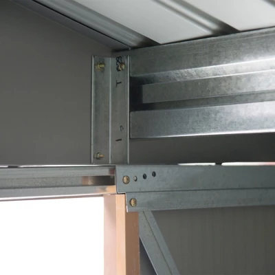 - Durable Construction: The metal shed has a galvanized steel frame with a weatherized and water-resistant finish, which makes it great to use and keep outdoors. Also has a sturdy base foundation support, which enhances the stability and keeps inner clean and sealed.