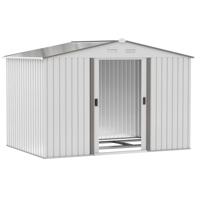 - Good Ventilation: Our metal sheds outdoor storage features four ventilation slots on the front and back, increasing both light and airflow, preventing odor, and helping to keep your equipment and tools dry. The double sliding doors allow easy access to this backyard shed.