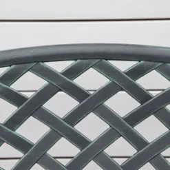 - COPPER VERDIGRIS COLOR ALUMINUM: A reliable outdoor seating solution, this park-style patio bench is made of heavy-duty double-coated aluminum. First powder-coated then protectively painted to provide multiple layers of protection against water and weather. Sit sooner after it rains; the stylish lattice design helps drain away water, so you have a dry spot to sit. Weight Capacity: 528lbs.