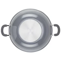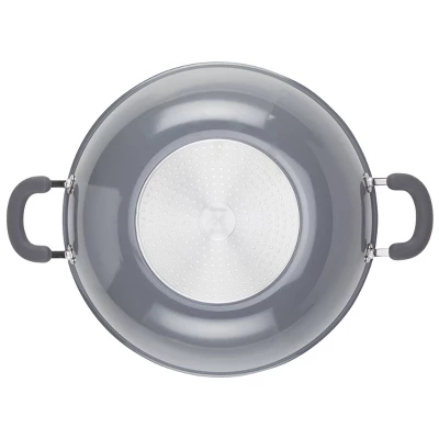 Get ready to wok and roll with the radiant and solution-oriented Rachael Ray Create Delicious Aluminum Nonstick Wok. Featuring vibrant, shimmering color combined with functionality, this versatile wok features durable aluminum construction for ultra-even heating. The enhanced PlatinumShield Technology silver nonstick is reinforced to be 9X harder than titanium for effortless food release. Colorful, dual-riveted stainless steel and silicone handles provide comfort and control while cooking. Flared rims make for easy pouring, and an induction-compatible stainless steel base provides strength, durability, and versatility to use on any cooktop. Plus, the pan is dishwasher safe for quick and easy cleanup. Oven safe to 400°F.