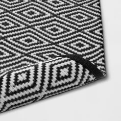 Add a stylish geometric pattern to your indoor or outdoor space with the Reversible Diamond Patio Mat from Room Essentials™. This rectangular area rug is decked out in an intricate and seamless diamond pattern in black and white that will easily coordinate with your existing decor. This geo-pattern rug is made of a material that’s suitable for use indoors or out, and it helps to add a chic pattern to your decor that will tie together your seating while adding a welcoming feel. Plus, the reversible construction means this rug provides extra versatility you’ll love.