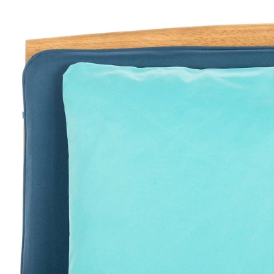 The open and airy design of the Rocklin 4-piece outdoor set combines form and function. The slatted silhouette is great for rain drainage, while creating chic contemporary forms. Crafted of acacia in a natural finish with all-weather cushions and navy accent pillows. Sit and relax indoors or outdoors with the Rocklin Outdoor Set. It’ll be a casual and convenient addition to any area you desire. This item does require assembly and is advised to be covered when not in use outdoors.