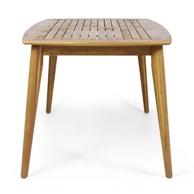 Enjoy a hearty meal in the great outdoors with your friends and family with the help of a stunning outdoor dining set. Offering a gorgeous acacia wood table and wicker wrapped chairs, our refined dining set offers both outstanding durability and impressive luxury all summer long. This set perfectly combines mixed materials to provide a classic, homey look for any patio or backyard space. Our dining set instantly upgrades your home with ample space for your guests and incredible style that will blend seamlessly with your existing furniture.