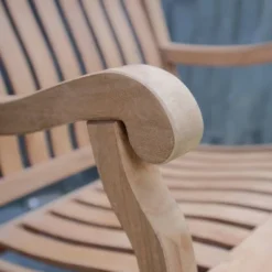 Create the perfect outdoor seating arrangement with this Sherwood Porch Rocking Chair from Cambridge Casual. This porch rocking chair featuring strong teak construction mixed with gentle rocking motion will pamper you to a good relaxing mood. Besides the quality, this teak rocking chair also provides you with a beautiful design, the armrest, seat, and backrest are thick and curvy, making you want to sit longer on this porch rocker.