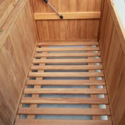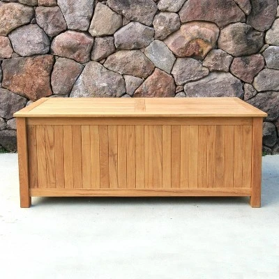Durably constructed of fine-quality teak wood, this weatherproof & maintenance-free Sherwood storage box from Cambridge Casual makes a statement for your outdoor space while providing a smart storage solution for extra toss pillows and kids’ toys. This box can be left outside to weather to a pleasant gray or if desired, teak oil can be applied to keep its original golden brown color. Comes with soft closure hydraulic hinges on lid. Teak is long known to get weathered into a beautiful silvery patina to add a natural touch to your outdoor space.
