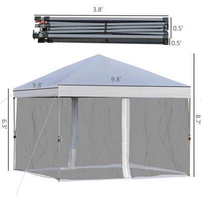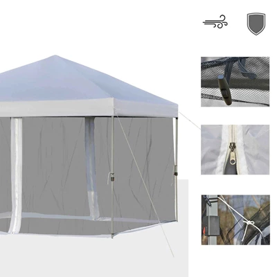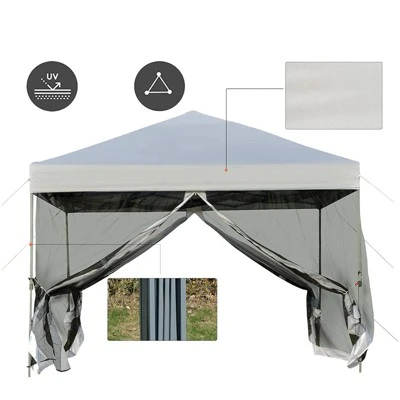 Grab your favorite drink and enjoy the shade with this SUGIFT 10 ft. x 10 ft. White Gazebo Pop Up Canopy. The sturdy frame adds a durable place for you to relax and escape the Sun. This tent is perfect for any occasion such as family gatherings, picnics, camping or tailgates. You can easily and quickly assemble or take down the tent with no hassle. The mesh sidewalls make it great for keeping bugs out so you can enjoy the outdoors even if the Sun goes down. Save time when setting up so you have more time to enjoy yourself with this easy to set up and stylish pop up gazebo.Features:Removable mesh sidewallsGood ventilationEffective protectionConnecting Buckle, easy to connectSmooth zipper, easy to accessStrap design, easy to fix3-level adjustable height for your different needsFoldable design for easy storage and transportUV protection, stable & durableInclded: Poller bag provied, foldable frame, and assembly requiredDimensions: 9.8 ft. L x 9.8 ft. W x 8.4 ft. HSidewall height: 6.3 ft.