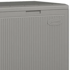 If you’re looking for a practical and stylish storage solution, the 22-Gallon Small Deck Box by Suncast is an excellent option for any space inside or outside your home.This deck box is ideal for storing cushions, garden supplies, or winter accessories, making it a versatile choice for indoor and outdoor settings. The garden storage bin has a modern reeded design sure to complement any decor, making it an attractive addition to your patio, balcony, or living room. The deck box is constructed from durable plastic, ensuring that it is built to last and can withstand the elements. Additionally, its low-maintenance design means it is easy to clean and requires minimal upkeep. Assembly is a breeze, with few tools required, so you can have your deck box up and ready to use in no time.Keep your throw pillows, small equipment, or pool supplies contained in the Suncast 22-Gallon Small Deck Box for easy storage any time of year.