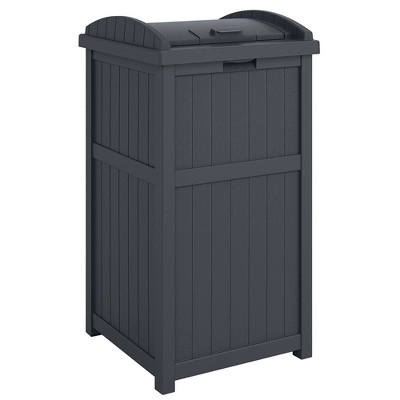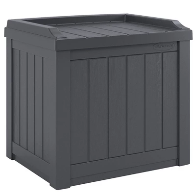 Keep your outdoor space neat, tidy, and stylish with this 22-Gallon Outdoor Small Deck Box and 30-Gallon Trash Waste Bin from Suncast.Both outdoor storage boxes are made from durable, long-lasting, waterproof, and all-weather material that can withstand unexpected weather conditions. The trash can has a securely latching lid that keeps trash hidden inside and protected from any elements and invading hungry outsiders and also features a solid bottom panel that will stay securely weighted down and prevents leakage. The trash can stands 31.5 inches tall and uses standard 30 to 33-gallon trash bags. Meanwhile, the deck box can be used inside or outside your home. With a 22-gallon interior, this deck box can hold everything from garden and yard tools to patio supplies and more. The deck box also serves as a handy bench seat for entertaining on your deck or patio, and its small size makes it ideal for your laundry room or garage.Regardless of your unique needs, this 22-Gallon Outdoor Small Deck Box and 30-Gallon Trash Waste Bin from Suncast will make a great addition to your home.