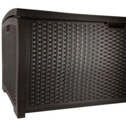 - 73-gallon and 99-gallon wicker-designed deck boxes store a wide variety of items