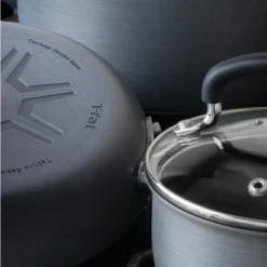 Now with Titanium reinforced nonstick, T-fal Ultimate Hard Anodized range is even stronger and lasts even longer. The unique T-fal Thermo-Spot heat indicator shows when T-fal pan is perfectly preheated to seal in the flavor of your food. The revolutionary exterior coating allows daily dishwasher use while maintaining T-fal Ultimate’s hard anodized satin gray appearance.
