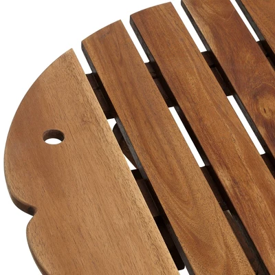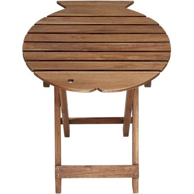 Perfect for pool parties and outdoor get-togethers, these convenient outdoor folding tables from the Teal Island Designs brand come with a fun fish-shaped slat table top constructed with acacia wood and a charming natural wood finish. Acacia wood is a dense, durable hardwood ideal for outdoor use. Native to Africa and Australia, it is resistant to the elements, rot, and insects, and ages beautifully over time.