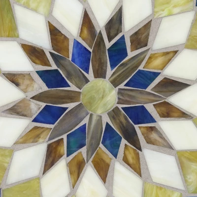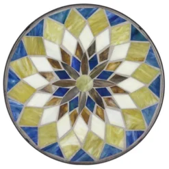 - Black finish iron frame. Petal design mosaic multicolor top.