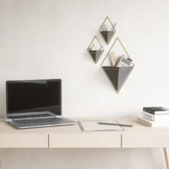 Trigg wall vessels are an exciting way to keep small indoor plants or other items, such as pens, pencils or even makeup accessories, on display and close at hand. Featuring a molded resin vessel and plated wire frame, these decorative vessels come with mounting hardware and are easy to hang. You can also group together multiple sets to create a mini indoor wall garden for your succulents or other small plants.