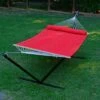 A top choice for challenging the elements! The Brazilian Sunbrella Double Hammock offers solution dyed acrylic fabric that is made to outlast every season, year after year. It is as comfortable as cotton, but is made to withstand fading from the sun and even cleaning with bleach. In this hammock, keep the vibrancy alive and enjoy the durability without the worry. Sunbrella Fabric Reflects UV rays, resists fading, resists staining & milder and features all season protection.