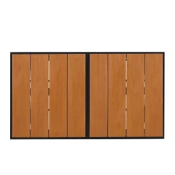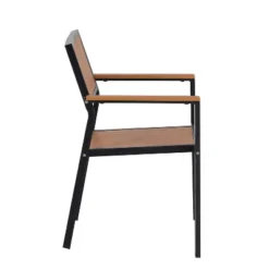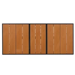 - Modern & Sleek Aesthetic – Features a contemporary wood-grain finish with minimalist iron legs, blending seamlessly into patios, balconies, and garden settings while maintaining a premium look.
