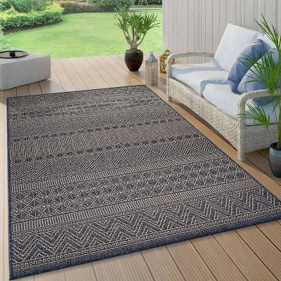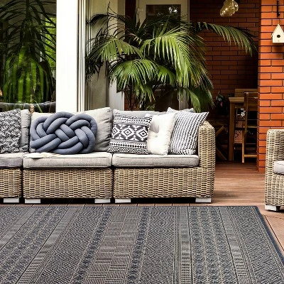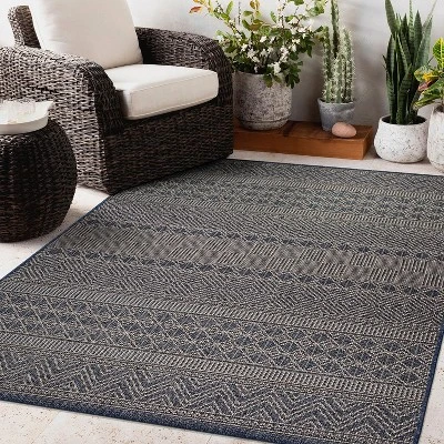- Durable Indoor/outdoor rug. Flatweave weather resistant construction