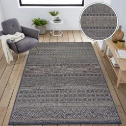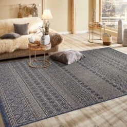 Experience the comfort, durability and versatility of this natural sisal look flatweave rug inside or outside of your home. It is Machine made in Egypt by using 100% polypropylene. Dual usage of this rug enables it to be easily cleaned. The modern geometric bohemian pattern add visual glare to any space.