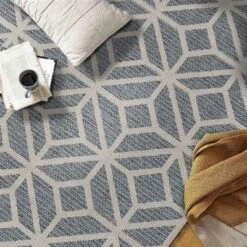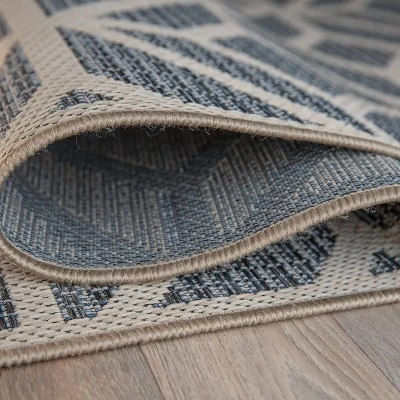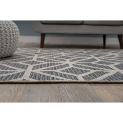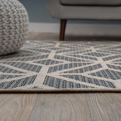 Opt for a mesmerizing motif to adorn your modern terrace with this machine-woven area rug. The intricate geometric pattern lends a contemporary flair, and the low pile makes vacuuming easy. Featuring stain-resistant polypropylene, this area rug provides a pet-friendly surface underfoot. These rugs will naturally resist stains, fading, soil and bacteria making them perfect addition to homes with kids and pets. Suits any room: This collection offers area rugs that are suitable for all indoor/outdoor spaces. Living room rugs, kitchen rugs,bedroom rugs, rugs for the entryway, office rugs, dorm rugs,dining room rugs,patio rugs,outdoor rugs.